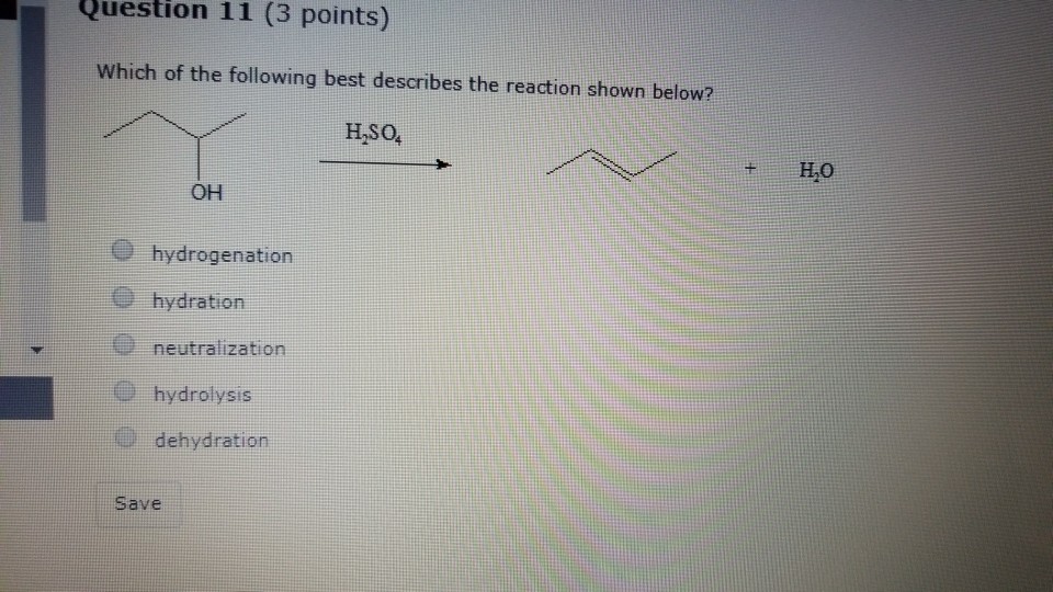 Which Of The Following Best Describes The Reaction Shown Below A Hydrogenation B Hydration C Neutralization D Hydrolysis E Dehydration Study Com