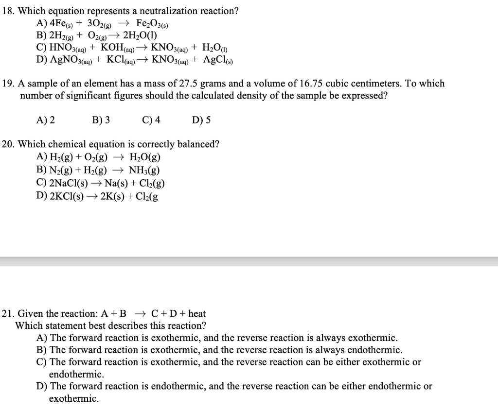 Solved 18 Which Equation Represents A Neutralization Chegg Com